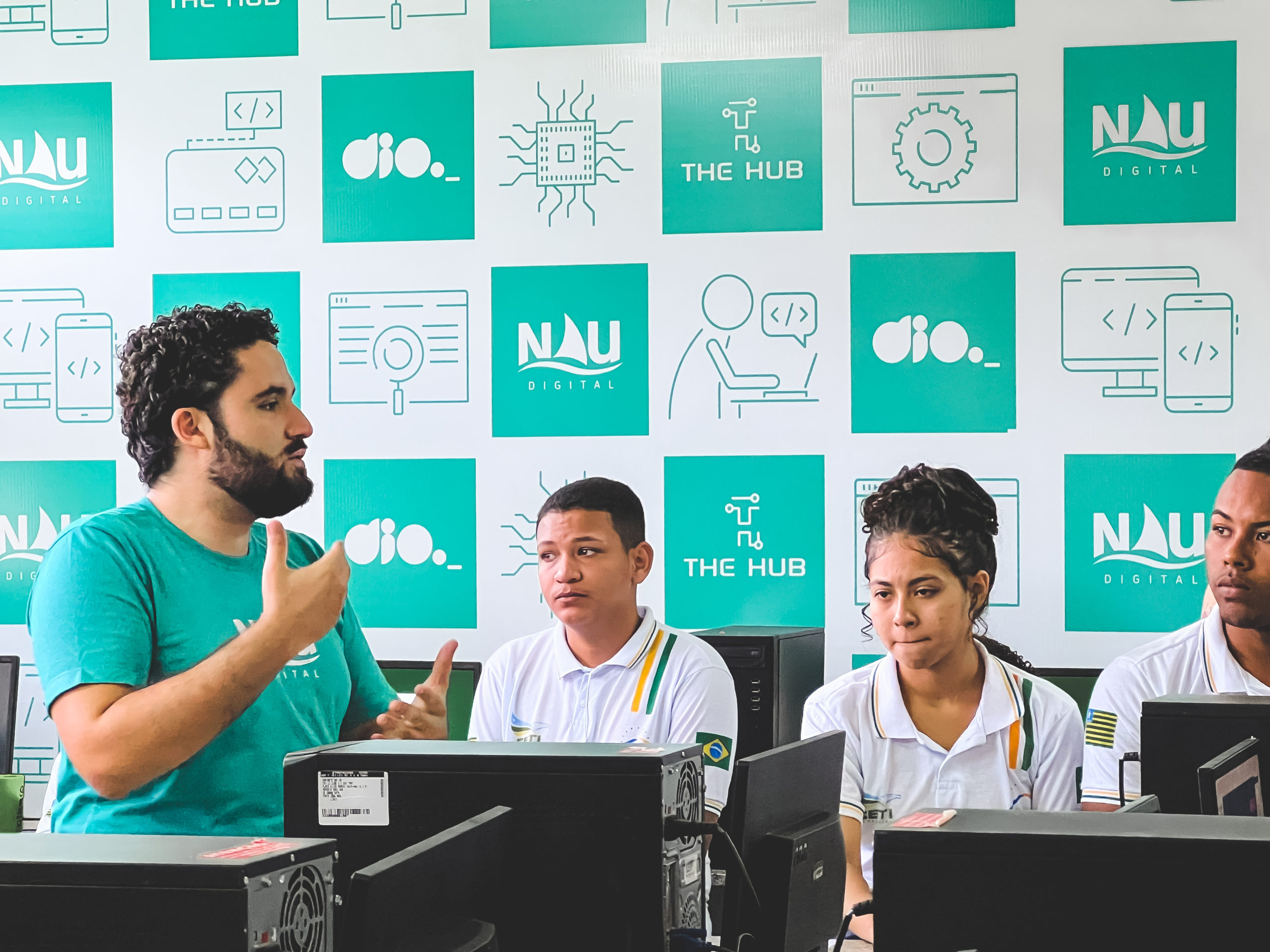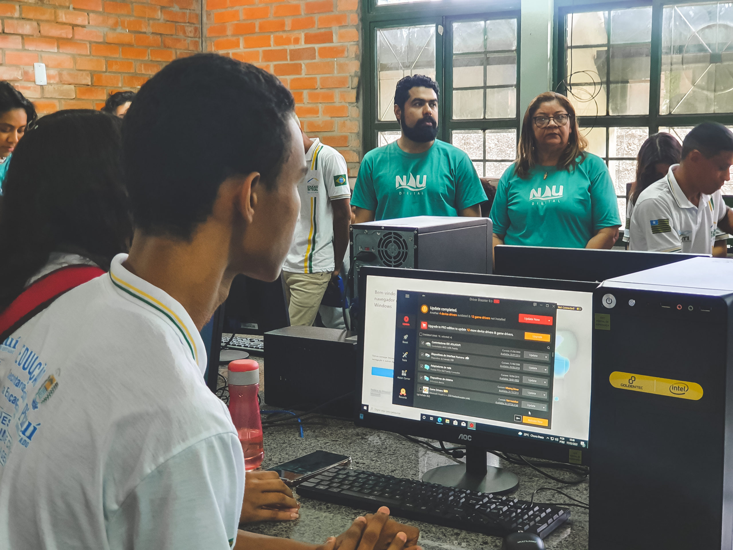 Através da Digital Innovation One (a DIO, plataforma parceira), os alunos assistem aulas no computador e conhecem programas e linguagens da programação. “Antes o laboratório estava parado, faltavam peças e computadores”, comenta Socorro Magalhães, diretora da instituição. Para ela, o NAU Digital fica ainda mais interessante quando integra também funcionários e comunidade. “A ideia é que, após a formação dos alunos, a gente possa estender também para as famílias e professores e funcionários”, comenta.