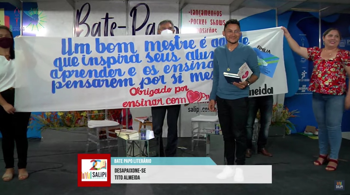 O escritor viajou 86 km até Teresina para participar do Salão do Livro – junto com ele, quatro ônibus lotados de estudantes também vieram para prestigiar o momento. Ao fim do bate-papo literário, mediado pelo anfitrião Alex Romero, os jovens estenderam uma faixa em homenagem ao professor:  “Obrigada por ensinar com amor”.