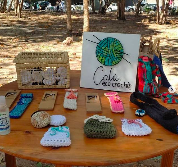 A psicóloga Ana Carolina Furtado, expôs seus produtos da @caluecocrochê, marca de produção ecológica que mistura moda e sustentabilidade à base de crochê – para ela, a participação em feiras é uma oportunidade de sair do Instagram para o mundo real. “Através da feira é possível alcançar um novo público e fazer esse papel educativo a respeito do impacto das nossas ações no meio ambiente”, diz.