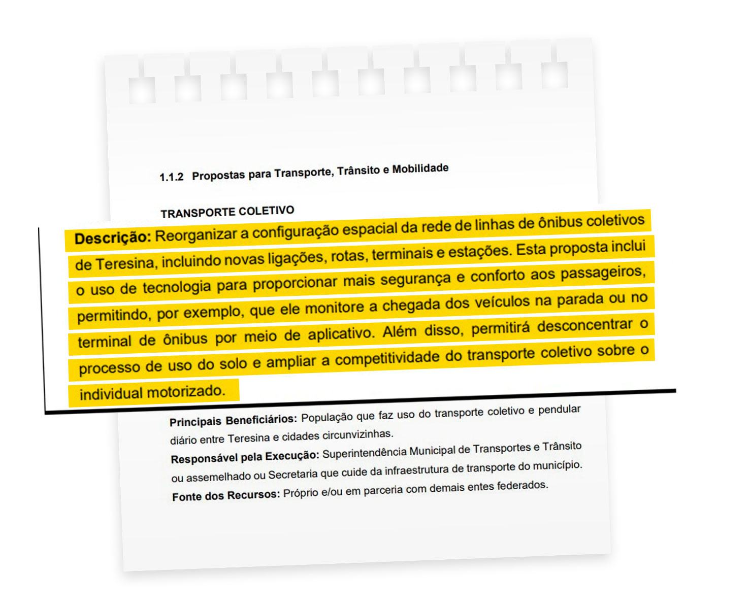 No plano de gestão municipal é apontado a reorganização e ampliação de novas rotas e estações.
