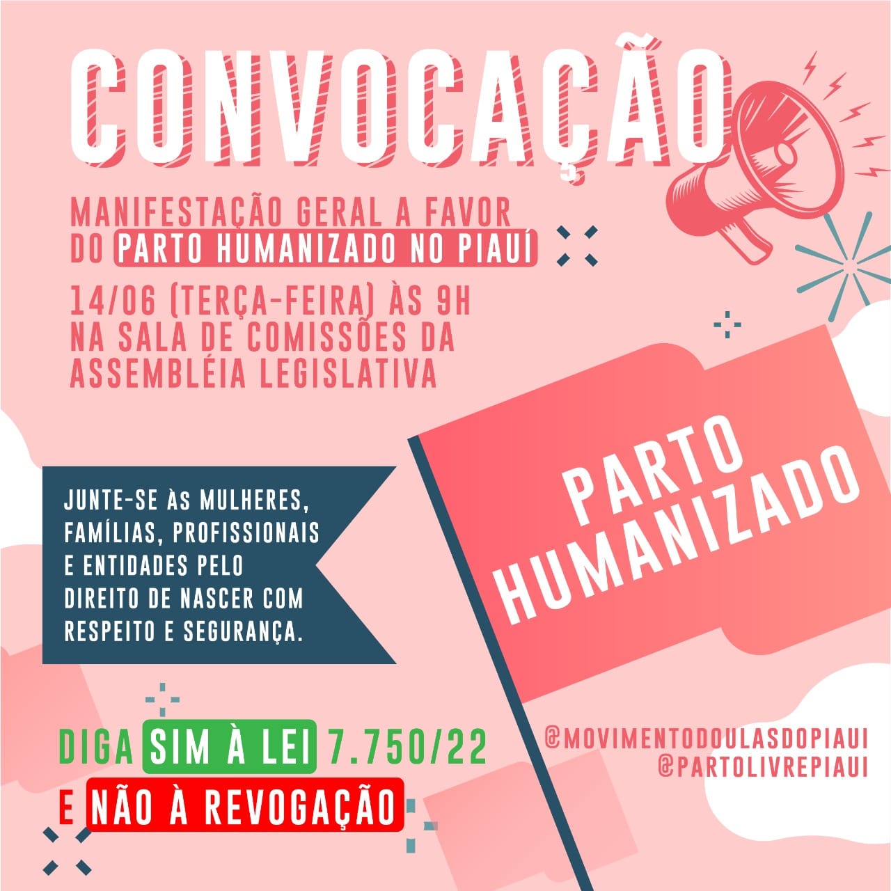 O Movimento Doulas do Piauí e Parto Livre Piauí organizam para amanhã, dia 14, uma manifestação geral a favor do parto humanizado. Será a partir das 9h na sala de comissões da Alepi.