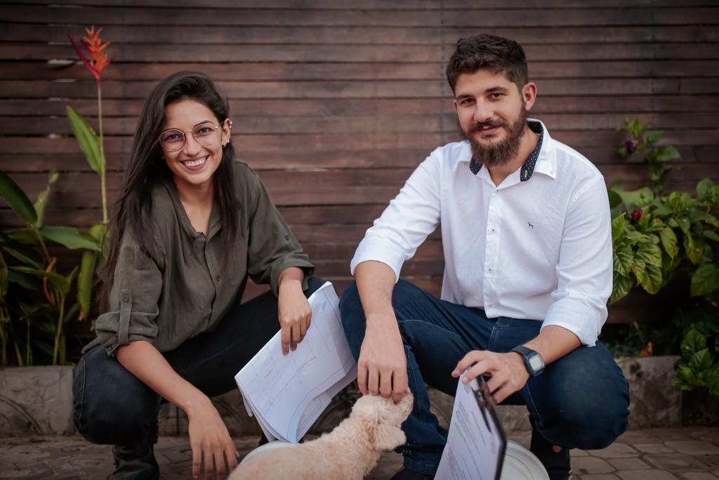 O casal, que se conheceu durante o curso de engenharia civil da Universidade Federal do Ceará, trabalha com recursos alternativos ao que costuma seguir a construção civil atual – abrindo mão do tijolo de oito furos tradicional para usar técnicas bio-construtivas, por exemplo.