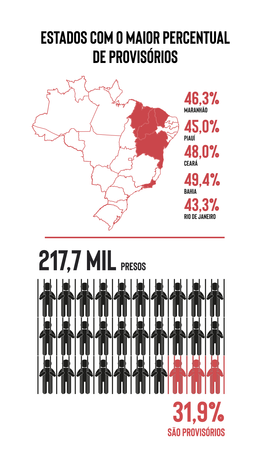 A política criminal apostada no Brasil é de repressão para infratores. Mas a sentença de que quanto mais houver repressão, haverá menos encarceramento, é contrariada pelos números alarmantes de lotação nos presídios. Dos anos 2000 a 2014, a população carcerária cresceu 161%. No período, os números revelavam que quatro em cada 10 presos no Brasil estavam atrás das grades aguardando um julgamento. Em mais de um terço das unidades, 60% deles estão há mais de 90 dias na cadeia – prazo tido como o mínimo razoável para que ele conheça sua sentença.