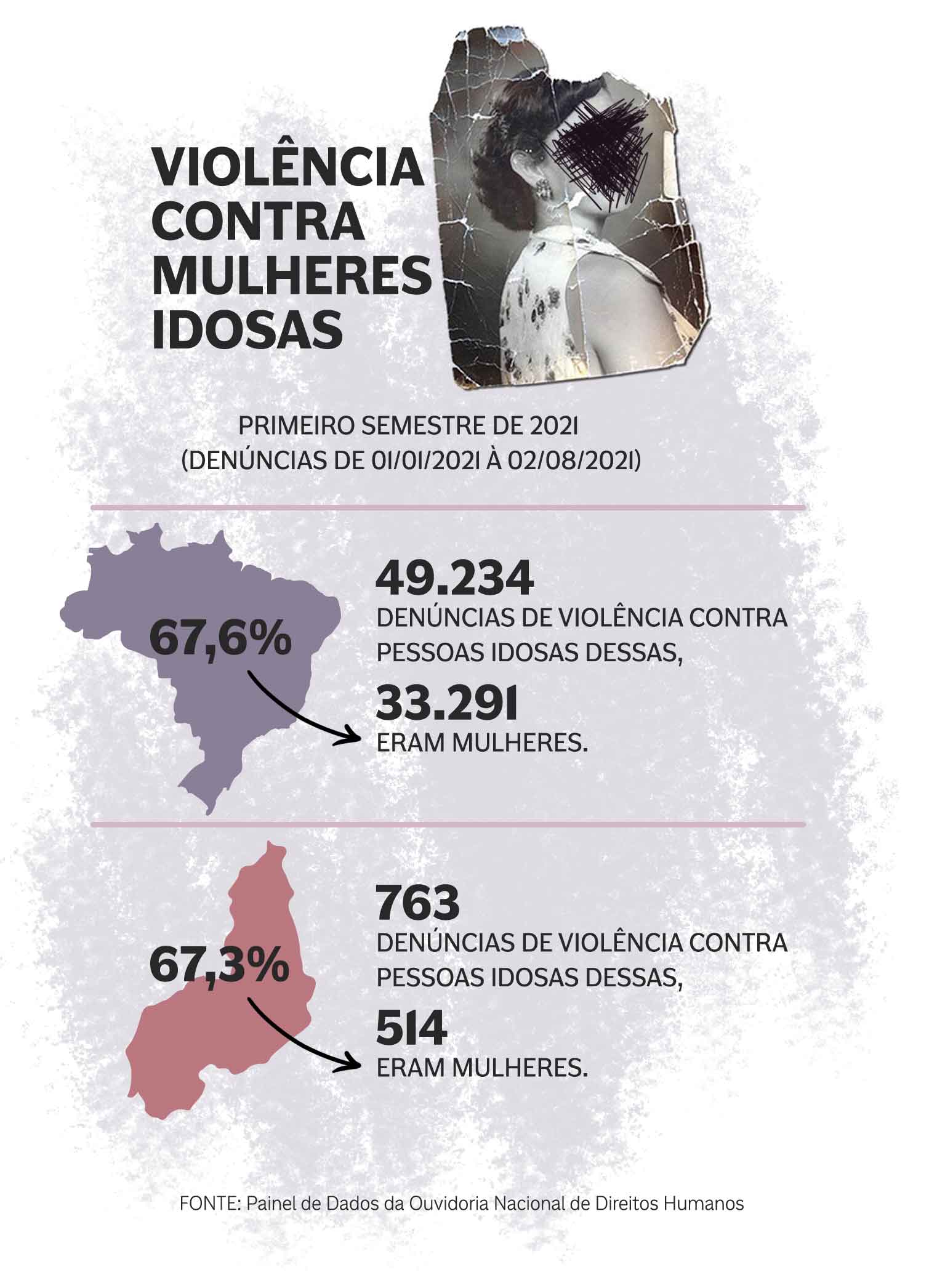 No primeiro semestre de 2021, o Brasil registrou 49,2 mil denúncias – desse total, 67,6% (33.291) das vítimas eram mulheres com mais de 60 anos. Desses registros, 37,7% foram de mulheres negras. No Piauí, os dados também se assemelham ao recorte geral: no mesmo período o estado registrou 763 denúncias – 514 delas (67,3%) de mulheres idosas e quase a metade delas (49,4%), negras.