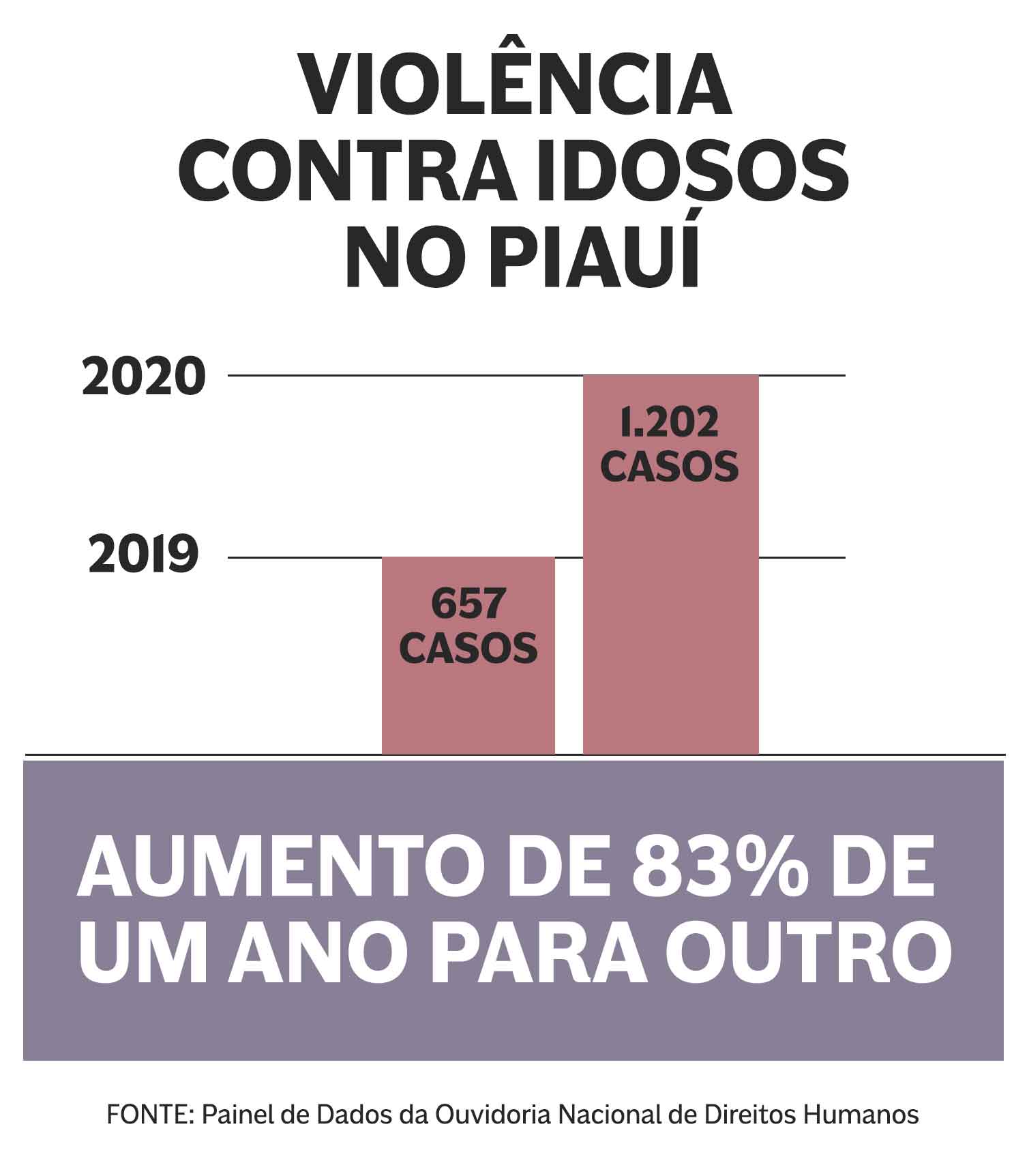 Em 2020, foram registradas 87,9 mil denúncias de violência contra pessoas idosas no Brasil. No ano anterior, as denúncias somaram 48,5 mil, registrando um aumento de 81% em relação ao ano anterior. O levantamento foi feito com exclusividade pelo oestadodopiaui.com através do Painel de Dados da Ouvidoria Nacional de Direitos Humanos (ONDH).