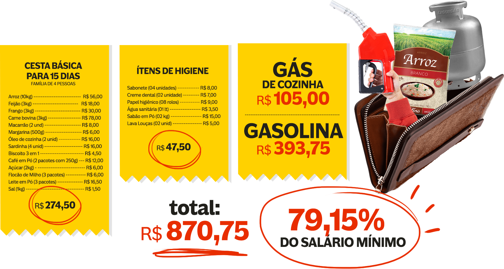 Os itens primordiais na mesa do brasileiro – arroz, feijão e carne – ficaram mais caros nos últimos meses. Confira o levantamento feito pelo oestadodopiaui.com de quanto uma família cuja renda corresponde a um salário mínimo tem seu orçamento comprometido apenas com os gastos considerados essenciais: