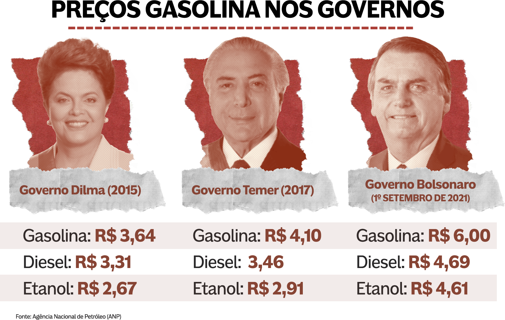 Após o processo de impeachment da presidenta Dilma Rousseff, em 2016, Michel Temer instituiu uma Política de Preços Internacionais (PPI) que se mantém no governo de Jair Bolsonaro e ajuda a compreender a influência do mercado internacional no país. O reajuste dos combustíveis no Brasil varia de acordo com a cotação do dólar, diferente do que acontecia no governo anterior, quando os valores sofriam intervenções do estado, não chegando ao consumidor final.