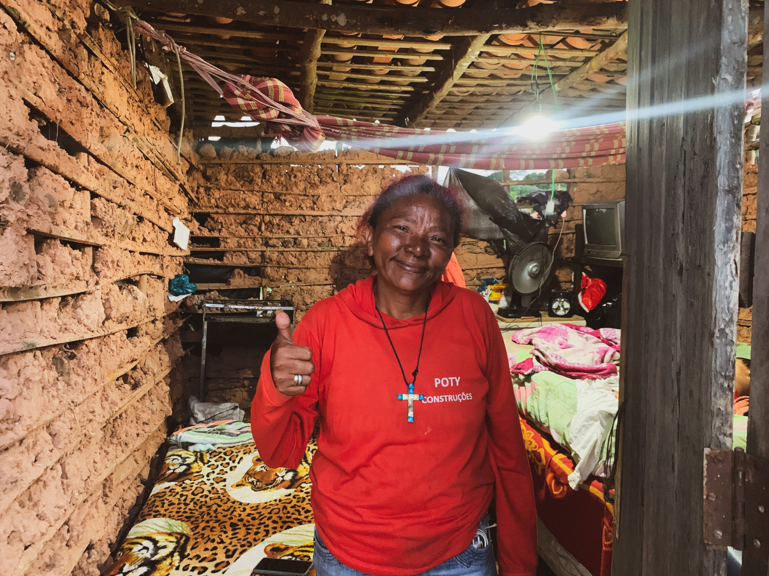 A 165 quilômetros de Sobras Lagoinha, no Planalto Uruguai, zona Leste de Teresina, cerca de 72 famílias passam pela mesma situação dos ocupantes de Sigefredo Pacheco. O lugar, batizado de Mirante do Uruguai, é cenário da busca cotidiana das pessoas pelo direito à moradia – e contrasta com as mansões do Alphaville, um condomínio de luxo da capital. “Olha o tamanho daquela casa ali, dava pra morar todo mundo do Mirante lá dentro”, conta Eva de Sousa, uma das moradoras da ocupação. Sua casa foi recém construída com madeira e barro. As paredes ainda revelavam buracos, tampados com lona. Enquanto conversava com o oestadodopiaui.com, um rapaz instalava energia elétrica na edificação. O lugar só tem um cômodo, onde amontoam-se uma cama de casal, uma de solteiro, televisão e ventilador. Eva divide o espaço com a filha e o neto, uma criança de apenas um ano. Uma lâmpada de cor amarela tremulava dentro da casa com a chegada da luz, fazendo a felicidade das moradoras. “Chegou a luz! Vamos ser ‘feliz’, minha gente”, festejavam. O neto, que dormia calmamente no centro da cama maior, acordou com as gargalhadas da avó.
