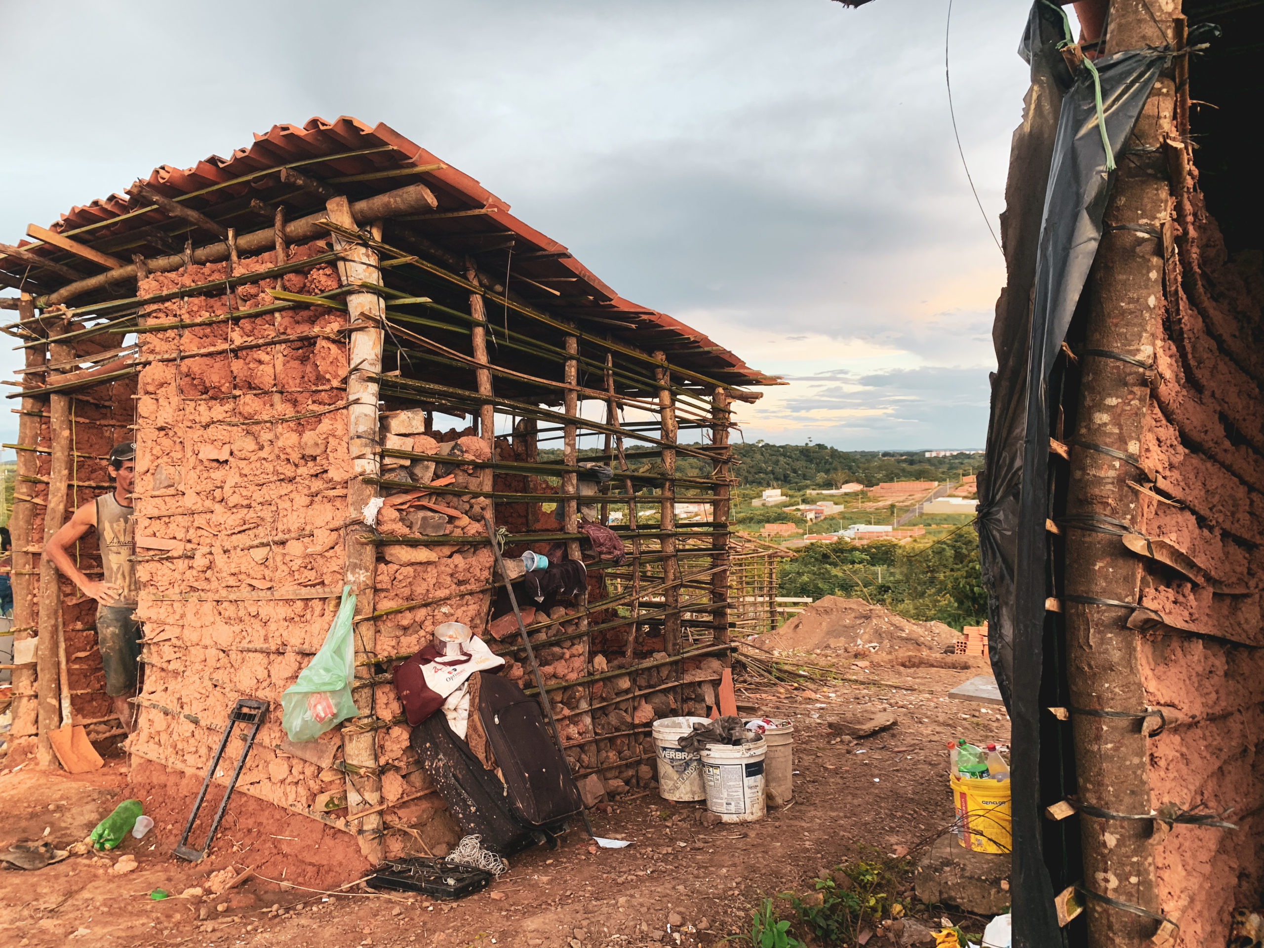 Para completar a alegria dos moradores, uma pequena caminhonete surgia na rua que dá acesso à ocupação carregada de folhas de palmeira e ripas. A chegada do material anunciava que mais edificações poderiam ser construídas. “Tudo isso é de doação, vaquinha ou ajudas que a gente recebe”, explica Leonardo do Nascimento, líder da ocupação. O material fica guardado em uma casa de aluguel, em frente ao local, que os ocupantes pagam com dinheiro de bingos e sorteios para poder custear o espaço de apoio.