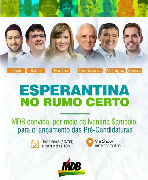 O lançamento aconteceu na cidade de Esperantina, norte do estado, onde Ivanaria Sampaio – esposa de Themístocles – é prefeita. Estiveram presentes os pré-candidatos Rafael Fonteles (PT) e Wellington Dias (PT).