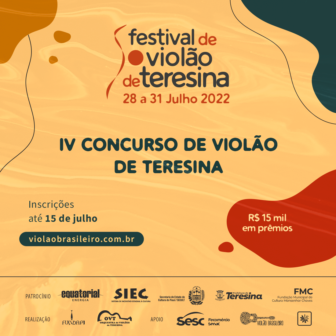 O Festival de Violão de Teresina volta ao formato presencial de 28 a 31 de julho. Na programação, recitais inéditos de grandes nomes como o dueto Cristóvão Bastos e Rogério Caetano, Fábio Lima, André Siqueira, Maria Haro, Flávio Rodrigues, Josué Costa, além da Orquestra de Violões de Teresina e Orquestra Sinfônica de Teresina.